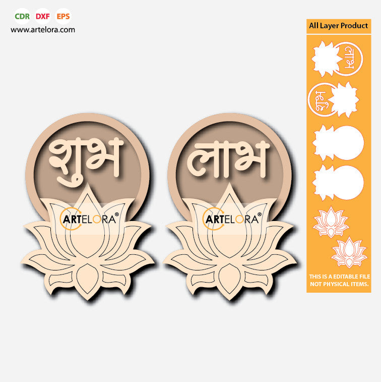 Pre Marked Base Design Shubh-Labh with Lotus (3 Layered)